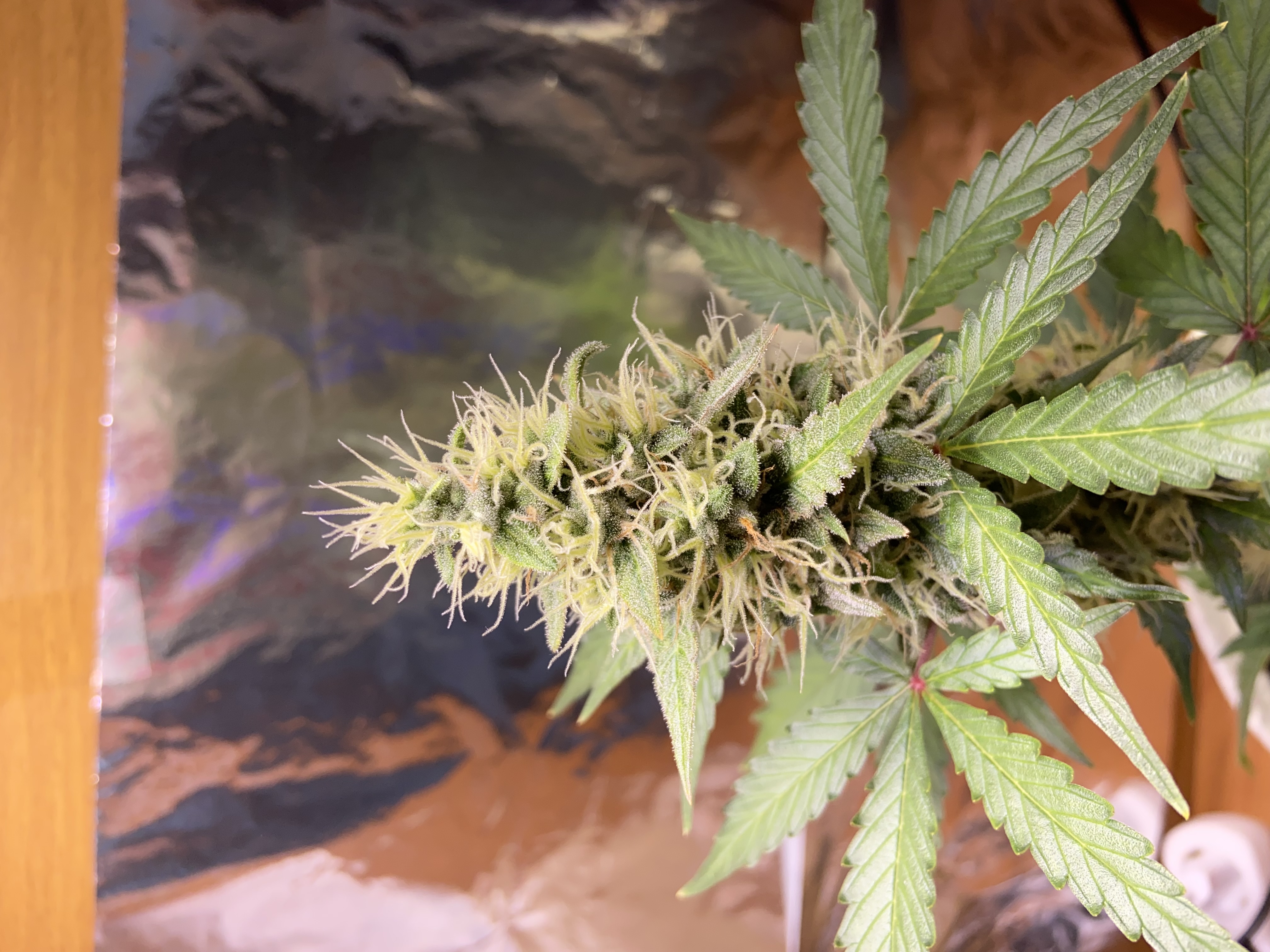 Сорт бомба, пофигу любой стресс только на урожай влияет. скоро харв но уже отрезал несколько листочков попробовал на вкус землянисто цитрусовый убивает хорошо с колпака почти бледный потом через 10 минут все прошло и захотелось поговорить заняться каким то делом посмеяться. А потом через час разумеется пошел грабить холодильник.