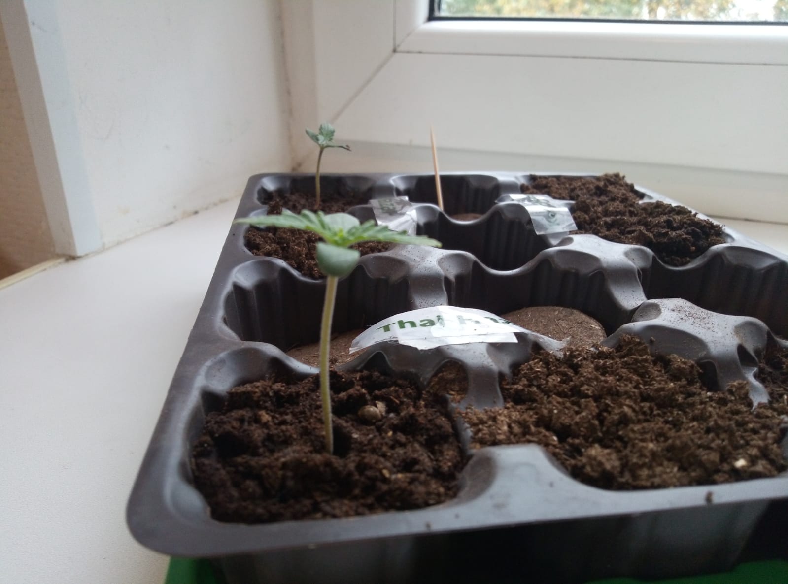 На фото рассада (5 дней) Семечки проклюнулись хвостиком 0,5см за 1день! На 2-й день из ватного диска переместил в почву. Взошли на 3й!!! Этот сорт мне известен по проживанию в Таиланде. Рекомендую тёплым вечером аккуратно устроиться в гамаке на веранде, предварительно приготовив ништяки. Аккуратно дунуть 1 раз и приготовиться... Вас обязательно навестит добрый дух Сиама)))