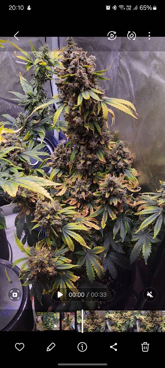 Просто шикарный сорт, шишки плотные, куст кушает что слон, небойтесь перекормить, поднимал на Бизах, последнюю неделю проливал покупной водой в пятишках, сушил в темном месте , вырвав с корнем и повесив верх корнем, курил прям с листвой которой не так и много. Советую продавца и его бобы